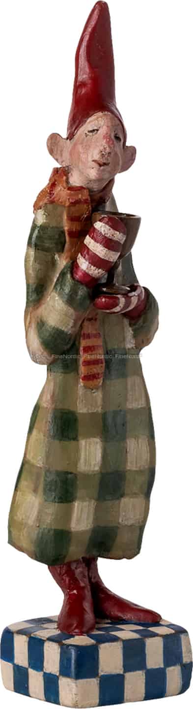 The Maileg "Grand Noël" collection captures the quiet magic of a Scandinavian Christmas, and No. 13 is a beautiful continuation of this story. This gentle pixy, bundled in a hand-painted checked coat and striped scarf, seems to have just stepped in from the cold, holding a warm drink to chase away the winter chill. Its endearing, sleepy expression and rustic finish give it the feel of a treasured heirloom, a character that has been part of family stories for generations.