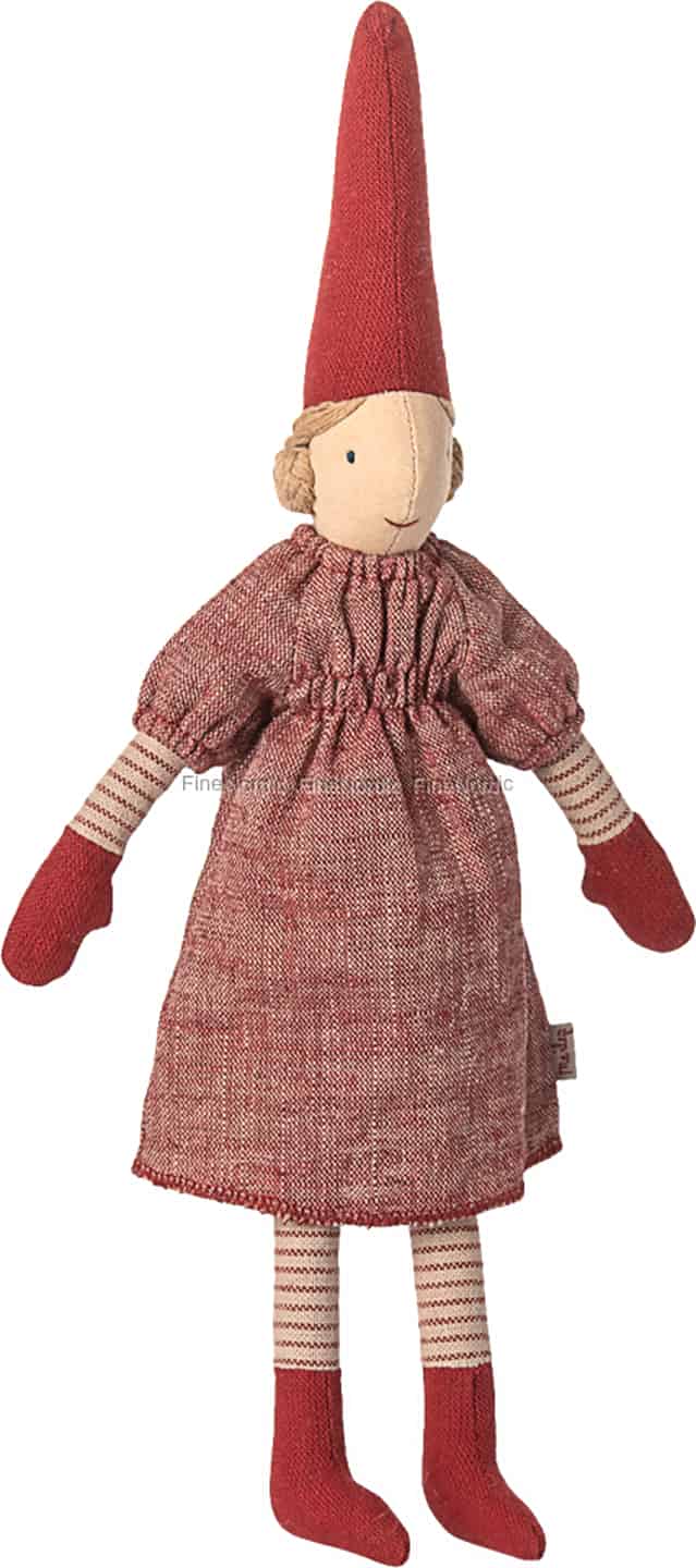 As winter nights draw in, invite a little Scandinavian magic into your home. This charming Maileg Pixy girl, with her kind smile and festive red dress, is ready to share in your family's most treasured Christmas traditions.