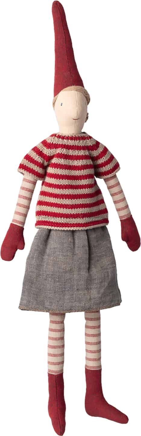 As the festive season draws near, invite a little Scandinavian magic into your home. This charming Maileg Pixy girl, with her gentle smile and cosy knitted layers, is ready to share in all your Christmas preparations and become a treasured part of your family's story.
