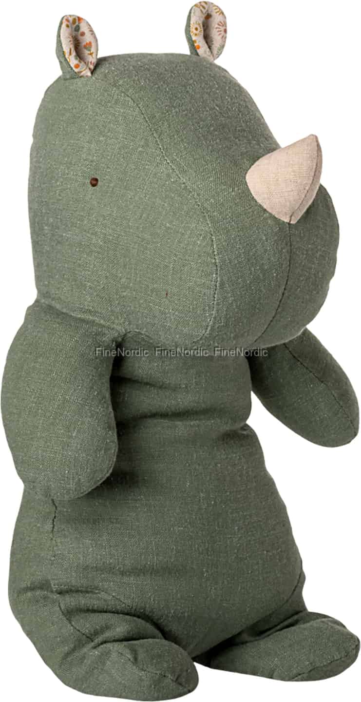 Imagine a gentle friend waiting patiently on a nursery shelf, ready for a story. This lovely rhino from Maileg, crafted from the softest sage green fabric, is just that companion, bringing a touch of quiet charm to your home.