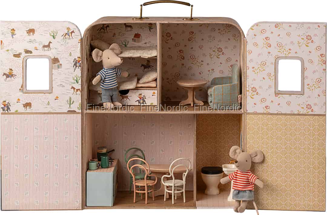 Imagine a little house that can journey anywhere. The Maileg SuitCasa looks like a charming traveller's case from the outside, but open its doors to reveal a wonderful four-room home, ready for your smallest friends to move in.