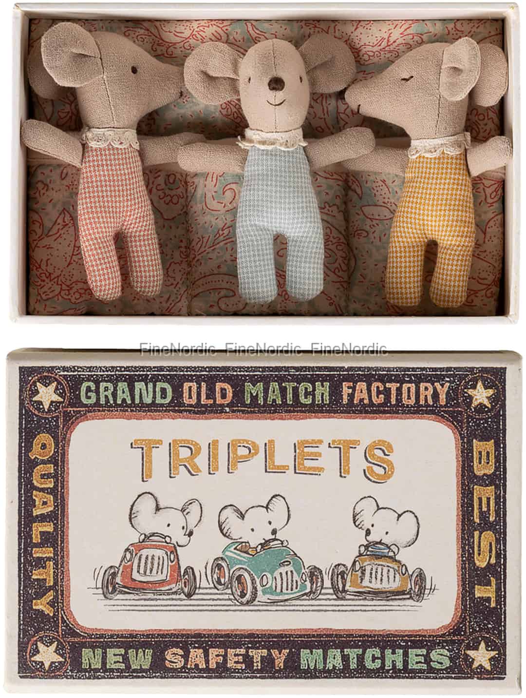 Maileg Triplets Baby Mice in Matchbox - Checker
