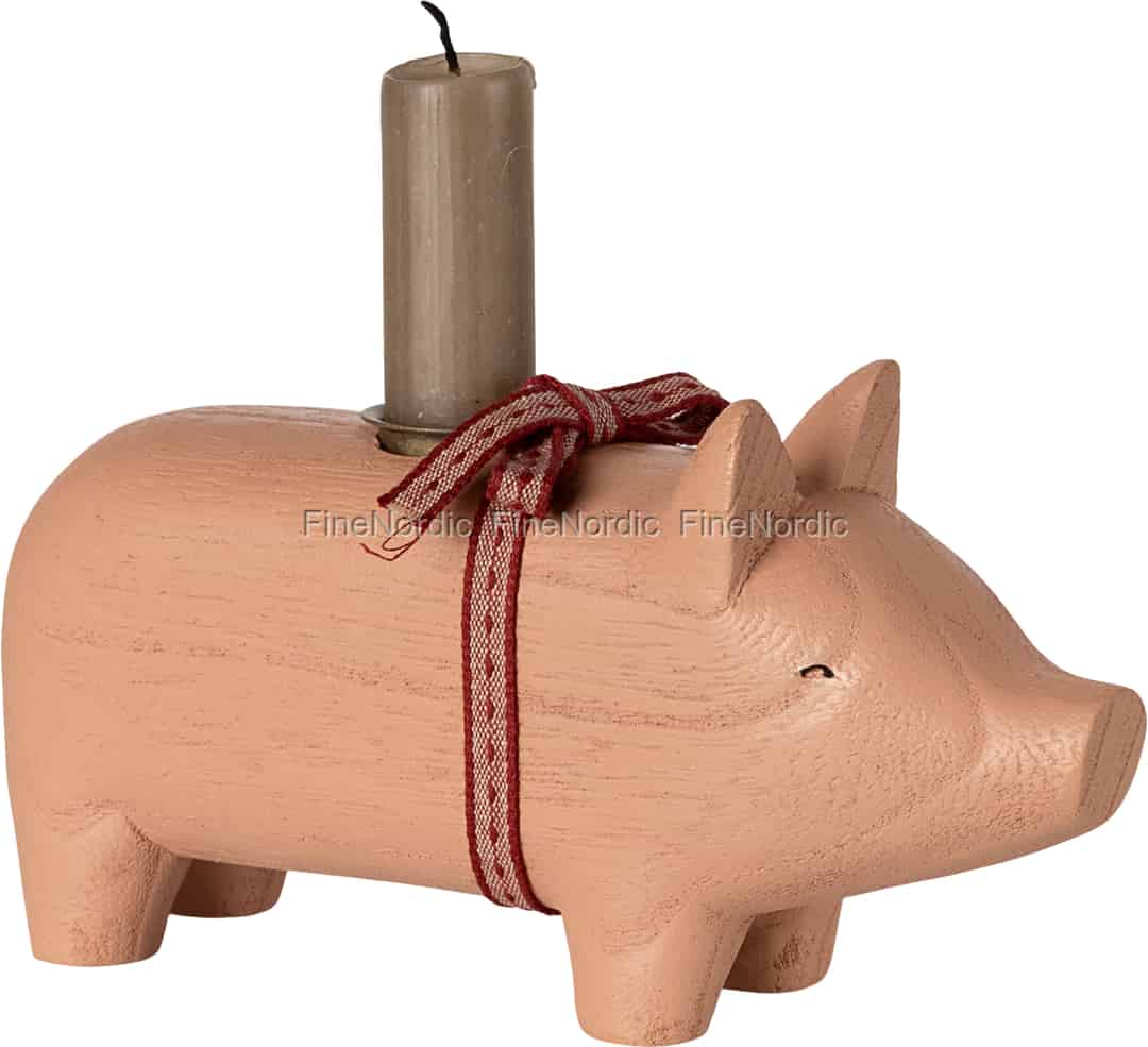 In Scandinavian tradition, the pig is a symbol of good fortune and festive cheer. Maileg has reimagined this beloved figure as a beautifully simple candle holder, ready to become part of your family's stories. You'll notice the subtle grain of the wood beneath the soft, rose-coloured paint, a detail that speaks to its honest, handcrafted origins. Its smooth, rounded form and sweet expression give it a personality all its own, turning a simple decorative object into a cherished companion for your home.