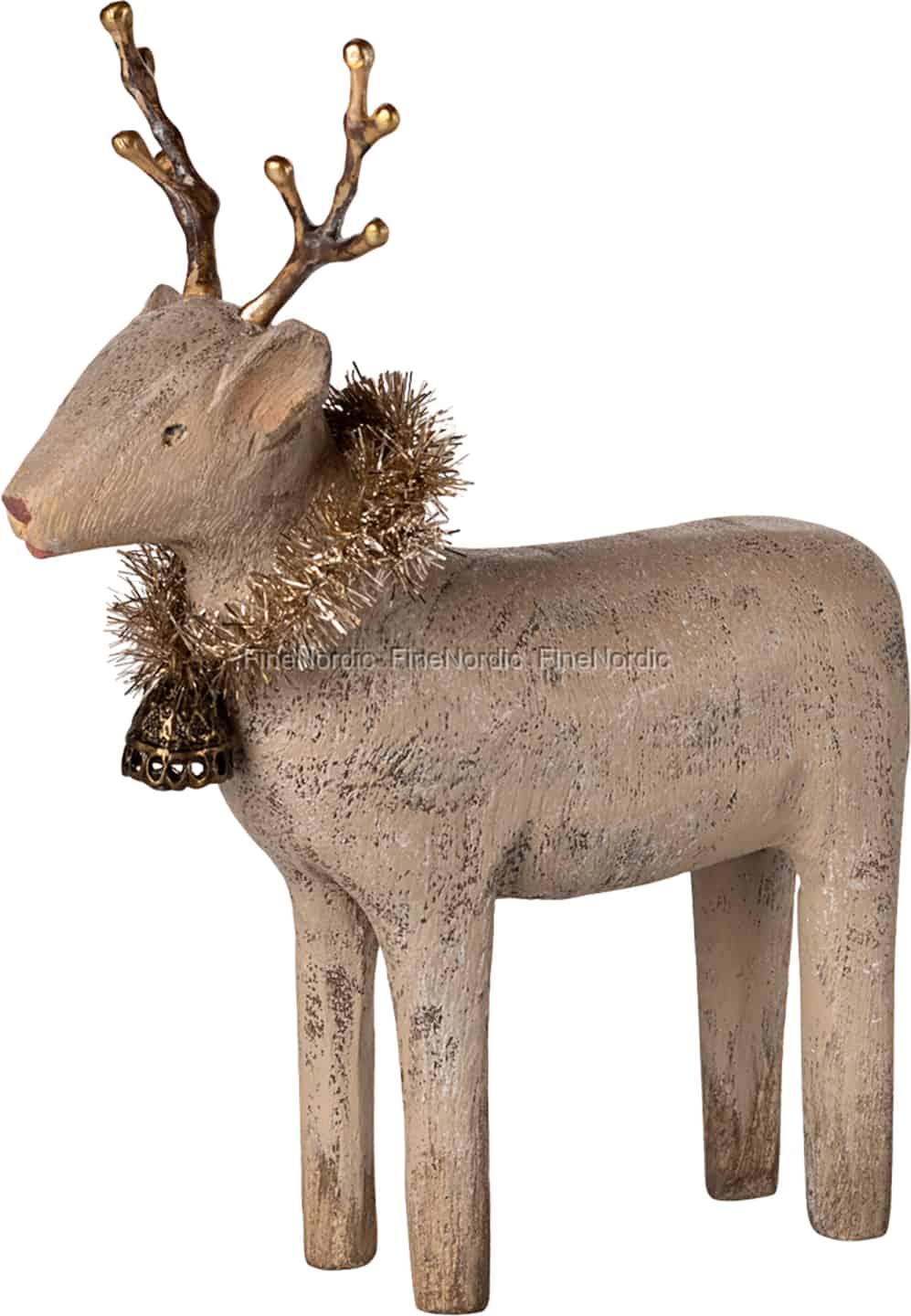 Welcome a quiet moment of festive wonder into your home with this charming wooden reindeer from Maileg. With its gentle expression and rustic finish, it seems to have wandered right out of a Scandinavian winter forest to join your celebrations.