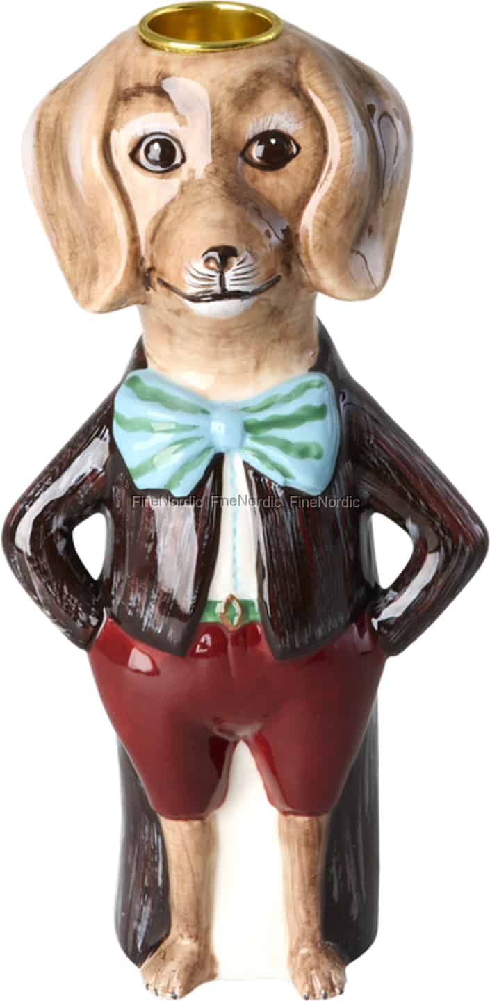 Meet the most dapper dog you'll ever invite to your table. With a confident pose and a charming bow tie, this delightful candleholder is more than just a decoration; it's a conversation starter, brimming with personality.