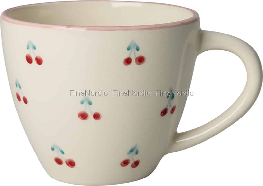 Imagine starting your day with a cup that feels like a warm hug. This jumbo ceramic cup from Rice, adorned with sweet, hand-painted cherries, brings a touch of playful charm to your morning coffee or afternoon tea.