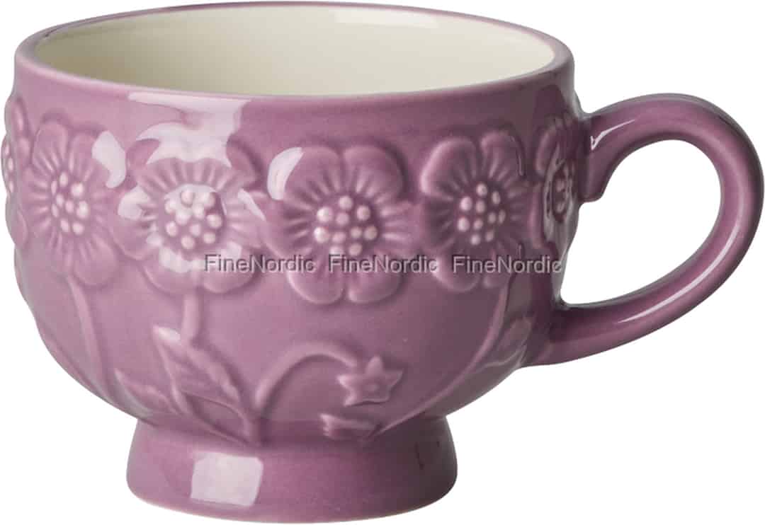 There is something truly special about the mug you choose for your morning ritual. This delightful ceramic piece from Rice is designed to make those quiet moments feel even more cherished. As you wrap your hands around it, you’ll appreciate the intricate, embossed floral pattern that encircles the lovely purple exterior. The glossy finish catches the morning light beautifully, while the contrasting off-white interior provides a perfect backdrop for your favourite coffee or tea. It’s a small detail that promises a cheerful start to any day.