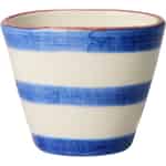 There's a special warmth in items made by human hands. This lovely espresso cup from Rice embodies that spirit, turning a coffee break into a moment of delight. Feel the smooth ceramic as you trace the bold blue stripes, each one carrying the unique touch of the artist's brush. The subtle reddish-pink rim adds a playful whisper of colour, a small detail that brings a smile. It’s a daily reminder to find joy in the little things.