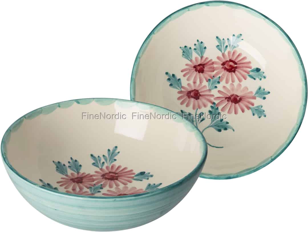 Inspired by sunny afternoons and tables laden with fresh food, this ceramic bowl from Rice is a celebration of everyday beauty. The creamy ceramic forms a perfect canvas for the free-flowing floral design, where each brushstroke tells a story of craftsmanship. The vibrant turquoise rim, with its gentle, wave-like scallops, beautifully frames the dusky pink blossoms, creating a piece that feels both rustic and wonderfully cheerful. It’s a bowl that invites you to slow down and appreciate the simple, happy moments.