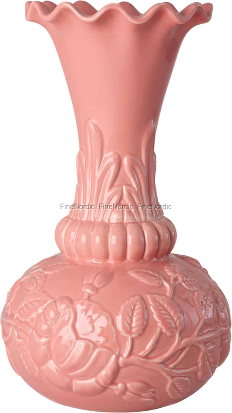 Discover a piece that perfectly captures the heart of joyful living. This stunning ceramic vase by Rice brings together timeless design and a wonderfully modern sensibility. The intricate floral relief, with its delicate roses and intertwined leaves, harks back to the artistry of classic porcelain, offering depth, texture, and a story in every curve. It’s a design that invites you to look closer and appreciate the thoughtful craftsmanship.