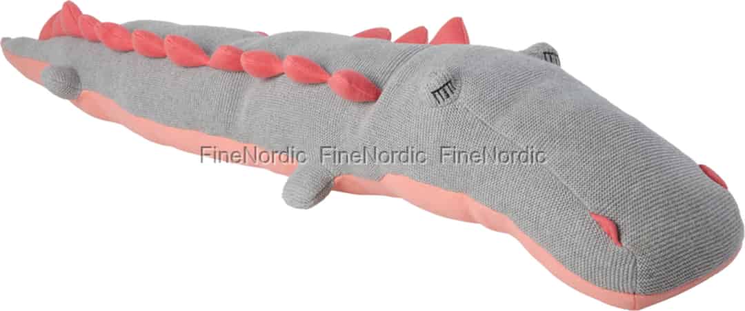 Introduce a touch of gentle fun to your little one's world with this charming knitted crocodile. With its sleepy embroidered eyes and soft pink spikes, this isn't a creature to fear but a friend to cherish. Its wonderfully long shape is just right for the biggest of hugs.
