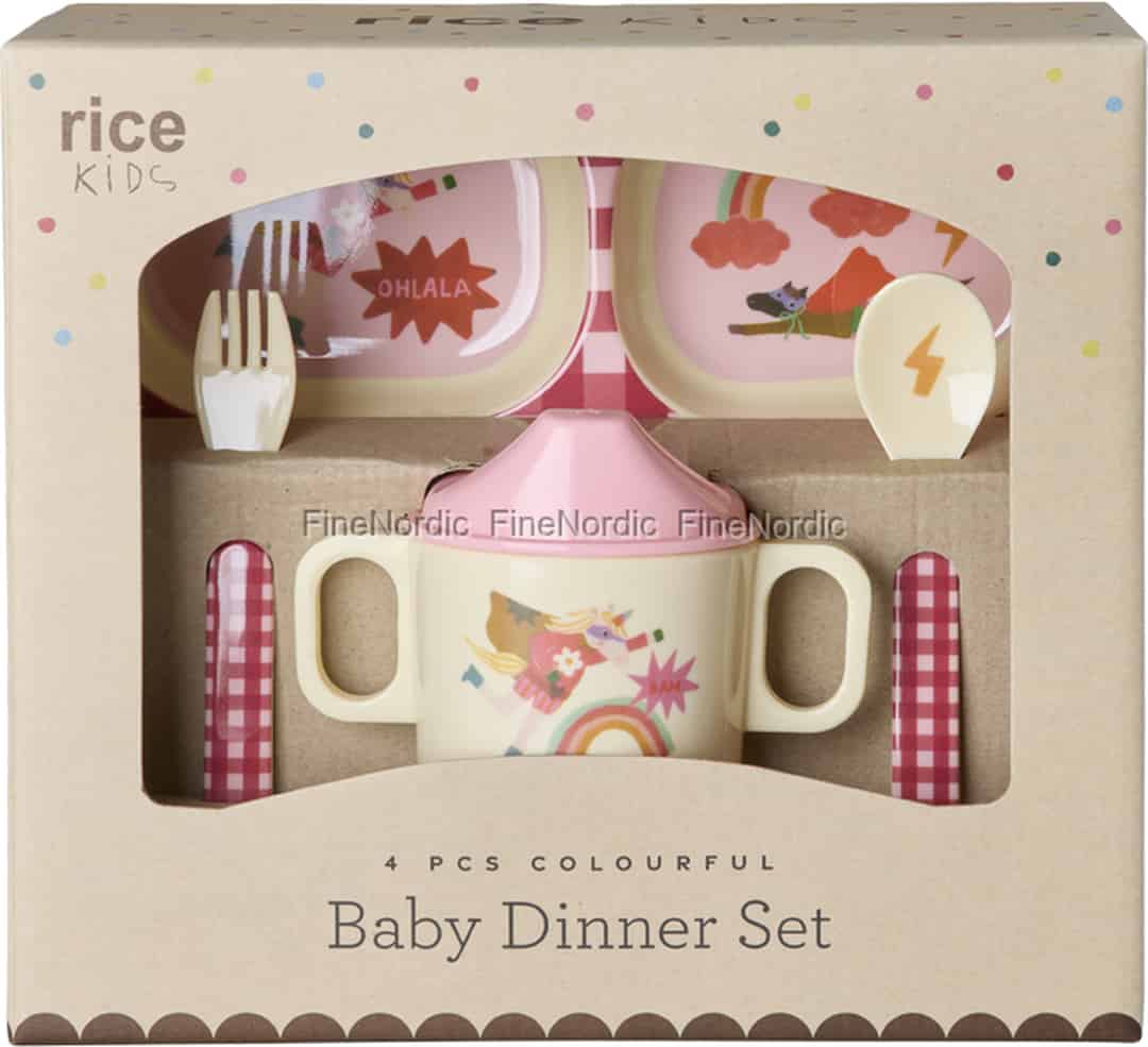 Imagine your little one's delight as they discover the world of a flying unicorn hero, complete with rainbows and comic-book bursts of 'BAM!'. This beautiful set from Rice is more than just dinnerware; it's a prompt for storytelling and imaginative play. The soft pinks and creams, accented with a classic red gingham check, create a visual feast that will have them excited to sit down for breakfast, lunch, or dinner. Each piece tells a part of the story, turning the simple act of eating into a joyful occasion.