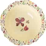 Celebrated French artist Nathalie Lété lends her signature whimsical style to this beautiful piece from Rice. The design is a joyful celebration of nature, reminiscent of vintage botanical illustrations found in a treasured storybook. Along the scalloped rim, a miniature wildflower meadow unfolds with tiny blossoms, delicate butterflies, and sweet heart-shaped berries, inviting you to look closer and discover each charming detail. It’s a design that sparks joy and inspires a sense of wonder.