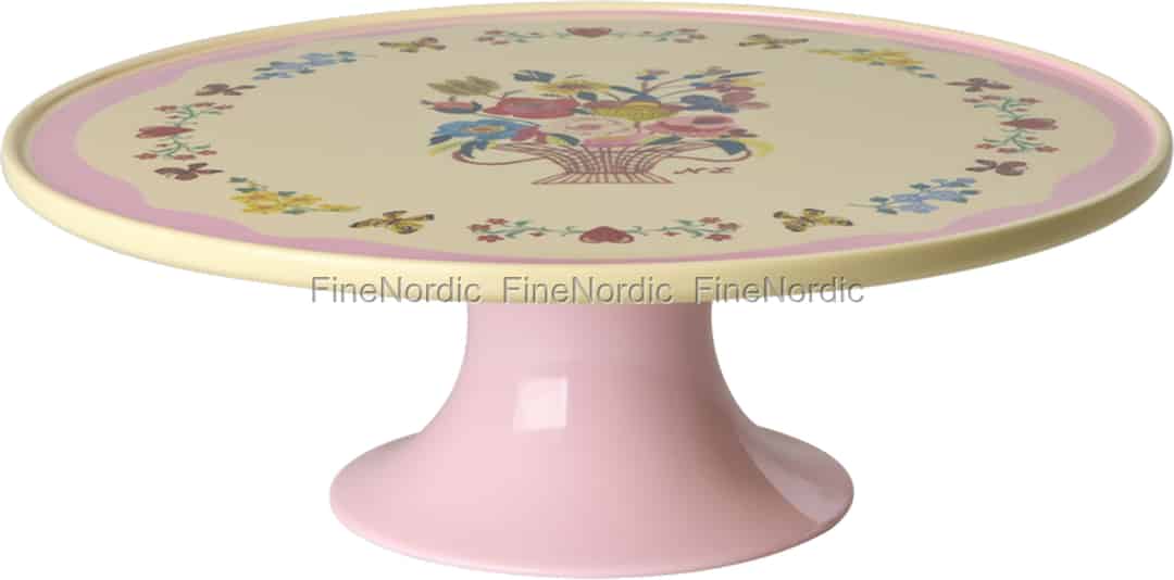 Let every slice of cake tell a story with this beautiful stand from Rice, born from a collaboration with the celebrated French artist Nathalie Lété. Her signature style, a blend of folk art and whimsical nostalgia, is captured in every detail of the floral illustration. From the central flower basket to the delicate butterflies and hearts that dance around the rim, this piece is designed to bring a smile to your face and a touch of artistic wonder to your home. The soft pink pedestal provides the perfect complement to the intricate, colourful artwork.
