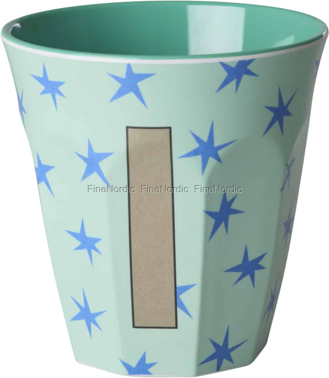 Bring a little piece of Rice's colourful universe into your home. This beautiful melamine cup isn't just for drinking; it's a daily reminder to find joy in the small things. The cool mint green exterior, scattered with cheerful blue stars, creates a playful backdrop for your initial. Inside, a contrasting solid teal adds an unexpected pop of colour that will make you smile each time you take a sip. It’s a design that feels both wonderfully modern and full of nostalgic charm, perfect for brightening up any kitchen shelf or breakfast table.