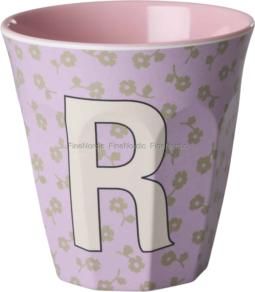 This design captures the playful spirit of Rice with its lovely lilac floral background and a bold, friendly initial. Made from durable melamine, it’s built to withstand the happy hustle and bustle of daily life, from the breakfast table to outdoor adventures. The smooth, glossy finish and the surprise of the soft pink interior make every sip a delightful experience, blending practicality with undeniable charm.