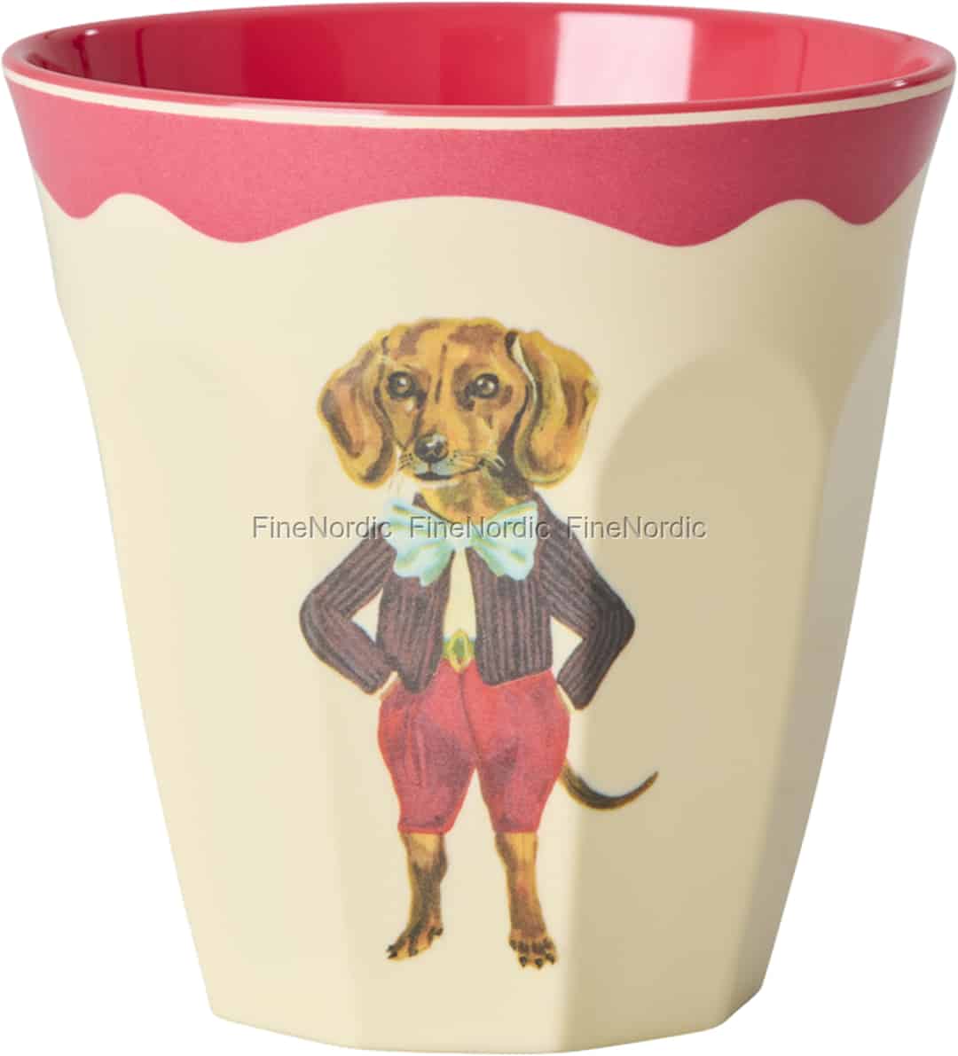 Begin your day with a touch of playful elegance. This delightful melamine cup from Rice features a charming illustration by artist Nathalie Lété, a dapper dachshund ready to add a little storybook magic to your routine.