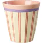 Rice is renowned for bringing colour and fun into the home, and the 'Stripey Love' cup is a perfect expression of this philosophy. The charming combination of coral-red and cream stripes, accented with a bold purple band and a soft pink interior, creates a design that is both playful and stylish. It’s a piece that doesn’t just hold your drink; it holds a little bit of happiness, designed to make you smile with every use. The durable melamine feels substantial and smooth in your hand, a reliable companion for daily life.