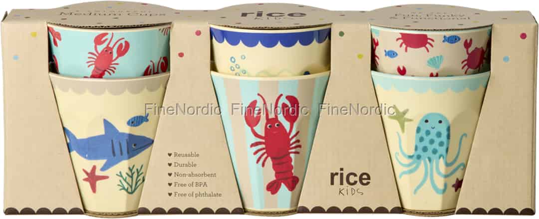 Let your little one's imagination dive into a wonderful underwater world. This delightful set of six melamine cups from Rice brings friendly sharks, cheerful lobsters, and smiling octopuses to the table, turning every drink into a joyful seaside story.