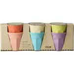 Imagine your kitchen table, suddenly alive with vibrant colour. This charming set of six small melamine cups from Rice brings a playful spirit to any occasion, from your morning juice to a child's party.