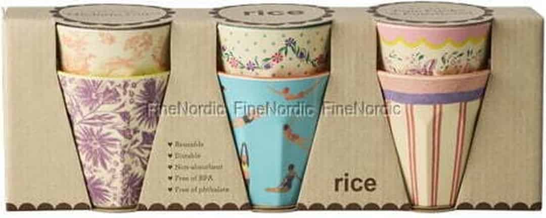 Rice Melamine Cups "Glory Days" Medium - Set of 6 in Giftbox