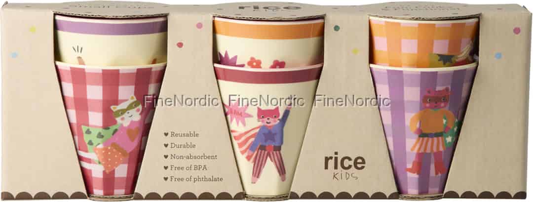 Ready for an adventure? This delightful set of six melamine cups from Rice turns every drink of juice or water into a playful mission. Each cup features a unique animal hero, ready to bring courage and colour to snack time.
