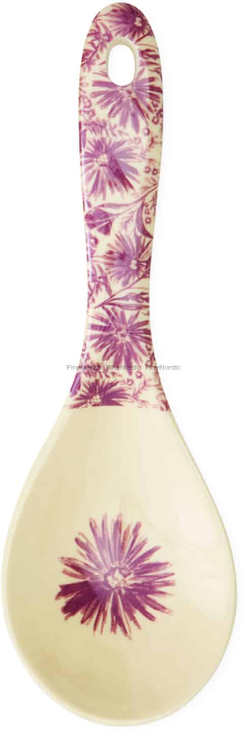 Let the nostalgic beauty of a pressed flower collection grace your dining table. The 'Glory Days' salad spoon by Rice is a celebration of simple pleasures, inspired by the charm of a rambling country garden. The intricate purple floral design, set against a warm cream background, evokes memories of long, sunny afternoons and the gentle art of preserving summer's bounty. It’s a piece that doesn't just serve food, but also serves stories and sparks conversation.