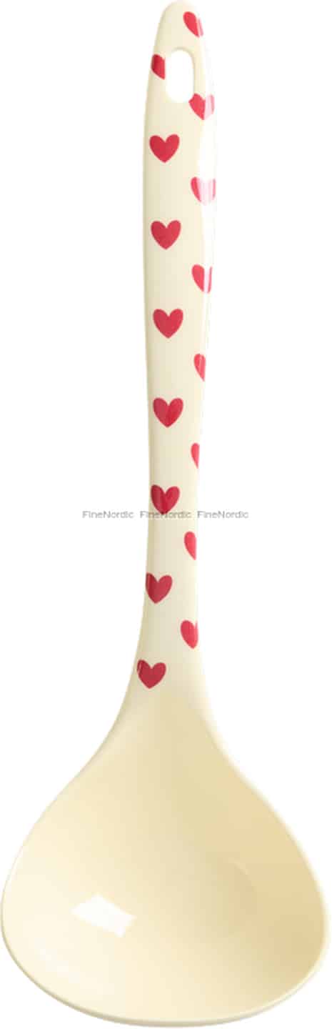 Imagine a kitchen filled with the comforting aroma of a simmering soup, ready to be shared. This lovely serving spoon from Rice is the perfect companion for such moments. Its durable melamine construction feels reassuringly solid in your hand, while the glossy, cream-coloured surface is beautifully decorated with a cascade of bright red hearts. Each scoop becomes a small gesture of affection, a way to serve not just food, but also warmth and happiness to those you gather around your table.