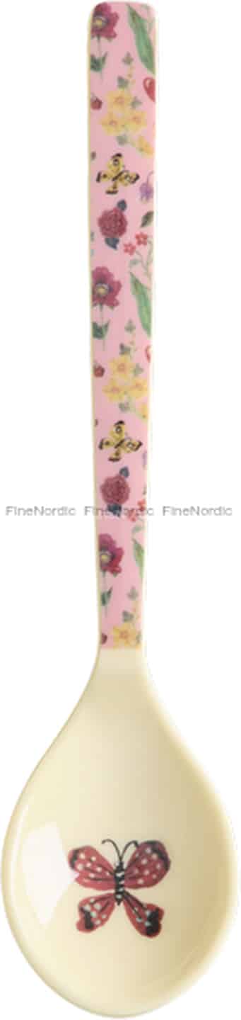 Let every spoonful be a small celebration of colour and creativity. This beautiful teaspoon from Rice is part of a special collection with renowned French artist Nathalie Lété, whose work is celebrated for its playful, narrative quality. The handle blooms with a vibrant meadow of flowers against a soft pink backdrop, leading to a creamy bowl where a delicate butterfly has come to rest. It’s a piece that feels both nostalgic and wonderfully fresh, turning a simple utensil into a miniature work of art for your table.