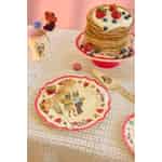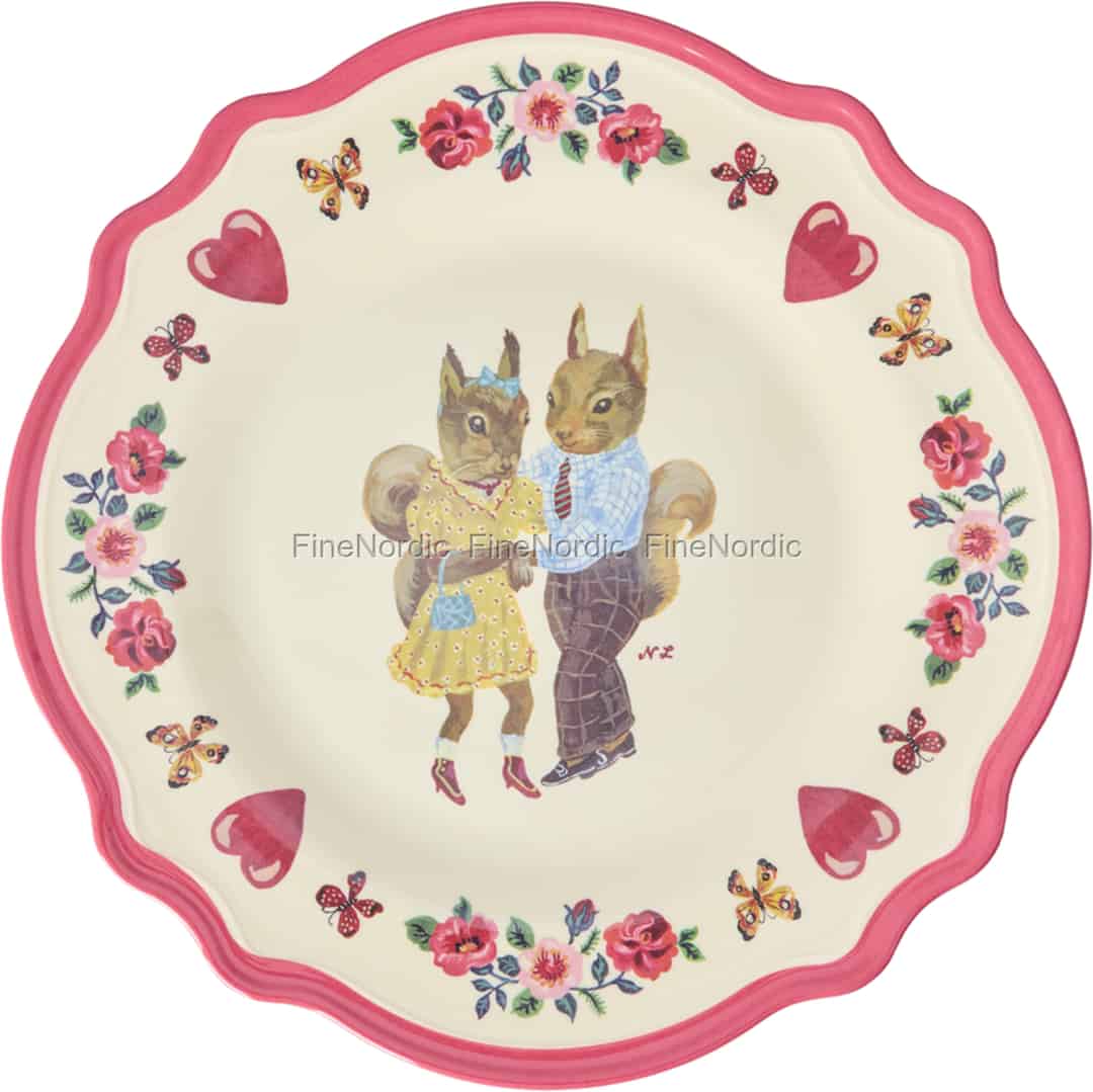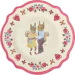 Invite a touch of storybook wonder to your table. This charming plate, designed by the celebrated artist Nathalie Lété, features a delightful squirrel couple surrounded by roses and butterflies. It’s a piece that turns every meal into a joyful occasion.