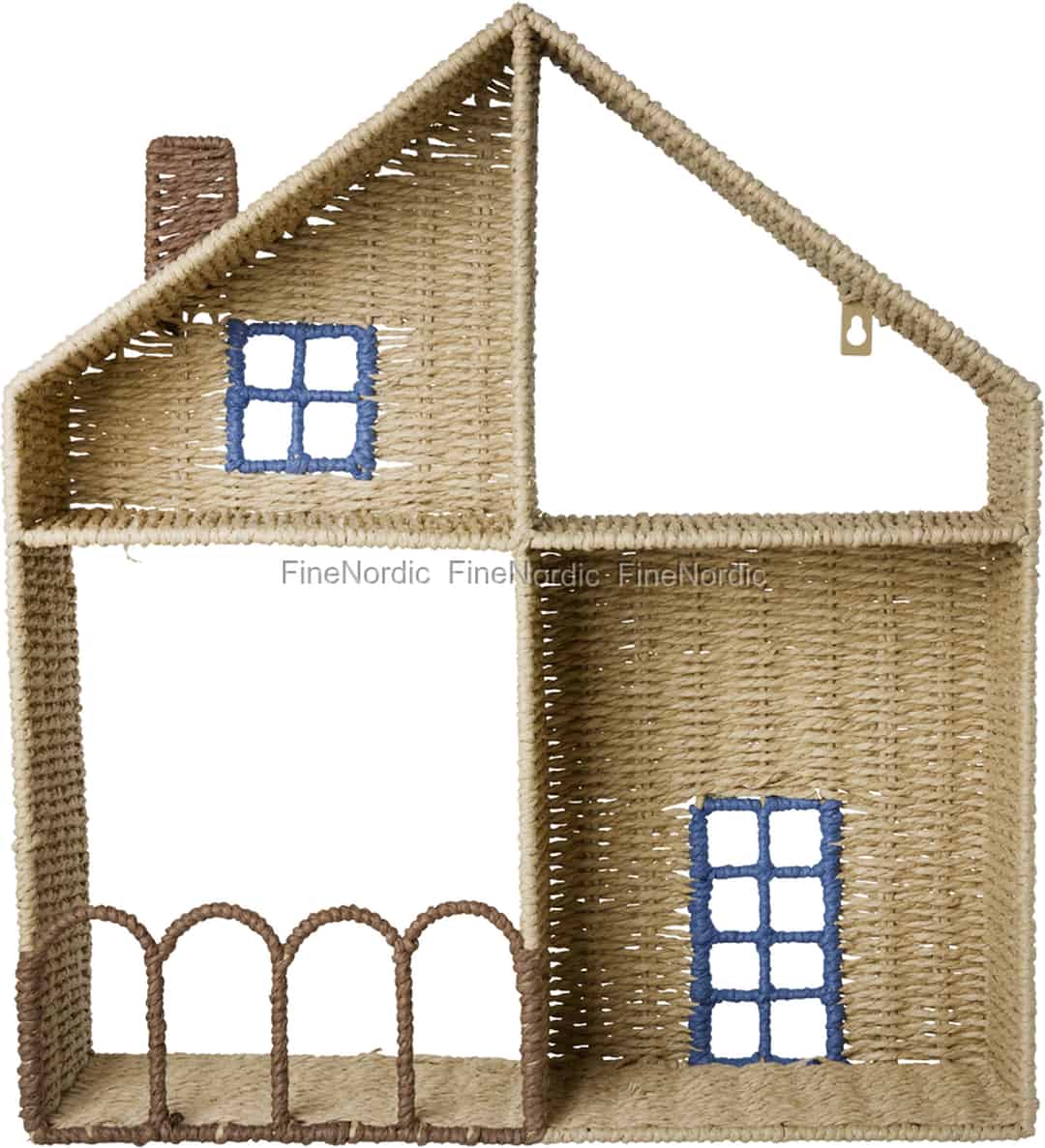 Rice Paper Rope Shelf - House Shape - Blue Details