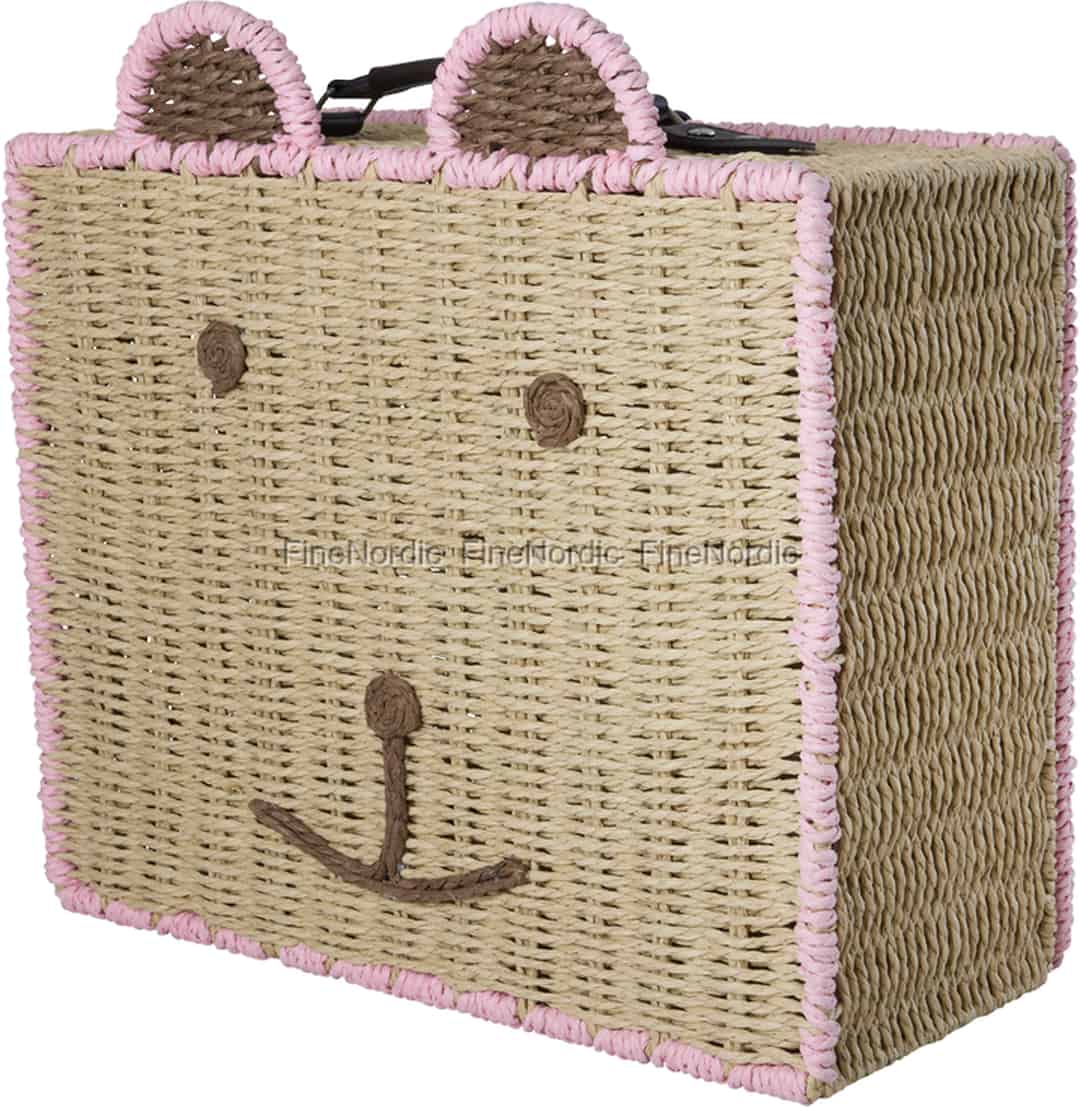 Bring a storybook character to life in your child's room with this enchanting bear suitcase by Rice. Every detail, from the carefully embroidered smile to the soft pink woven trim, is designed to spark joy and inspire imaginative play. The sturdy, woven paper rope construction gives it a wonderfully tactile and authentic feel, making it more than just storage—it's a friendly companion waiting to be filled with secrets and stories. Watch as your little one carefully packs their favourite things, ready for a grand adventure in the living room or a sleepover at their grandparents' house.