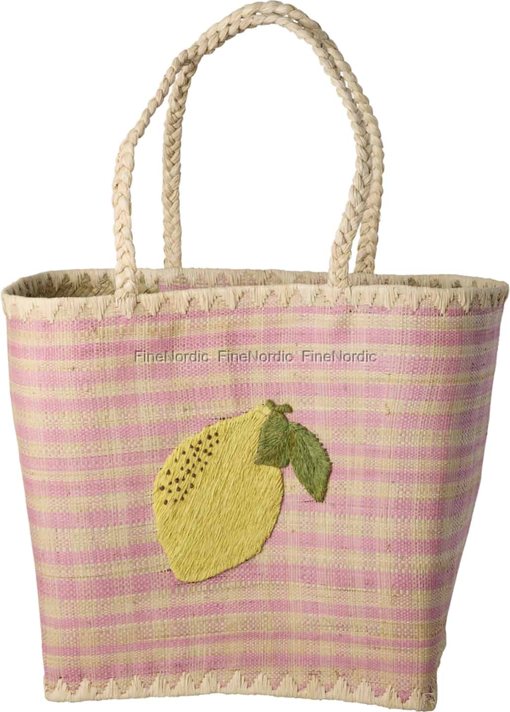 Rice Raffia Bag - Lemon Embroidery - Pink - Large