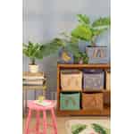 From the heart of Denmark, Rice brings you storage that smiles back. This beautiful square basket is a testament to their philosophy of "everyday magic," blending practical organisation with irresistible charm. It is lovingly handcrafted from natural raffia, giving it a wonderfully robust and textured feel. The dusty blue weave provides a calming backdrop for the scattered, cheerfully embroidered bananas, each one a small detail that sparks joy and transforms a simple storage solution into a decorative feature you'll love to display.