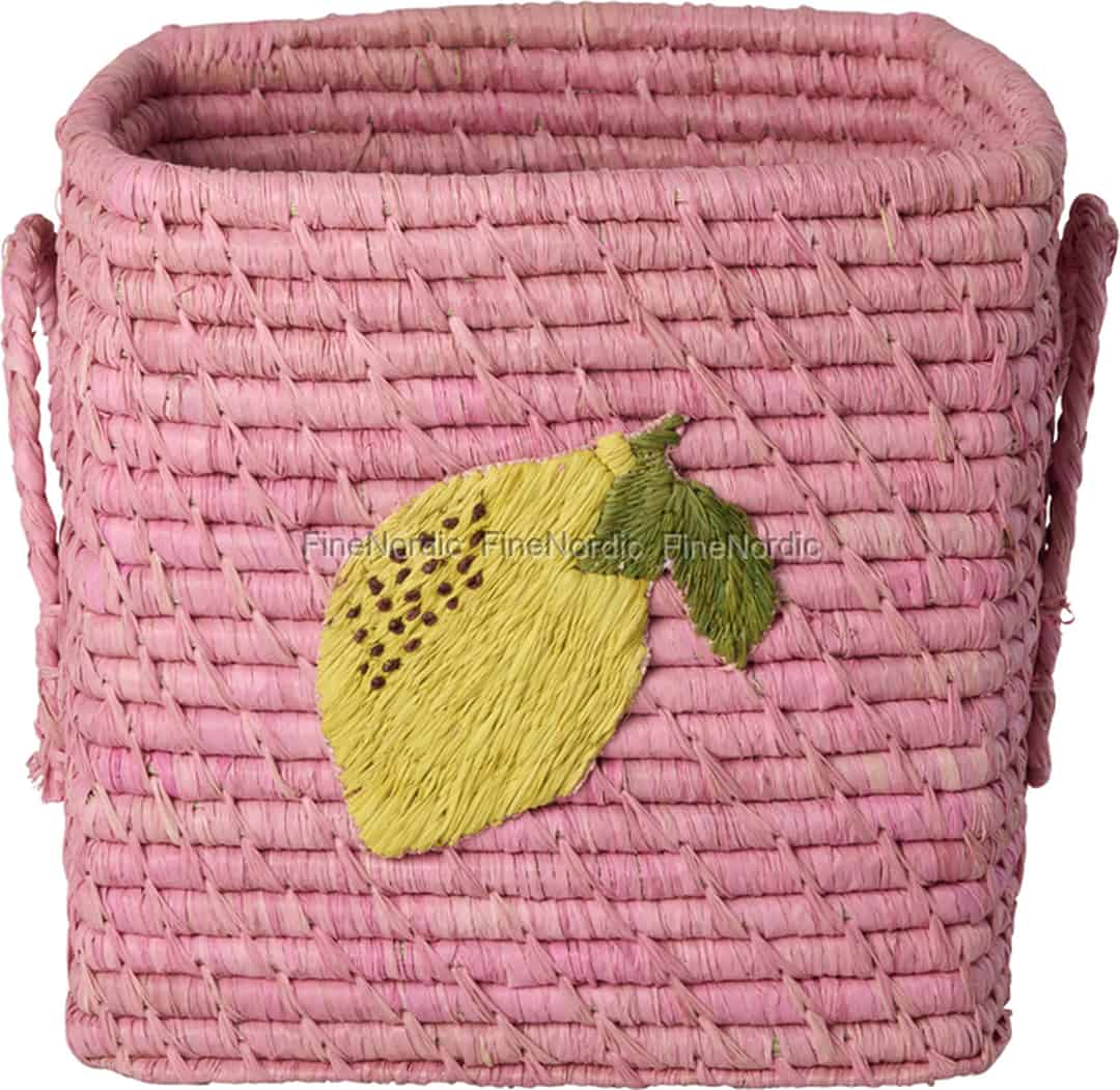 Introduce a little sunshine to your daily routines with this delightful raffia basket from Rice. Hand-woven in a joyful pink, its true charm lies in the beautifully embroidered lemon, promising to brighten any corner of your home.