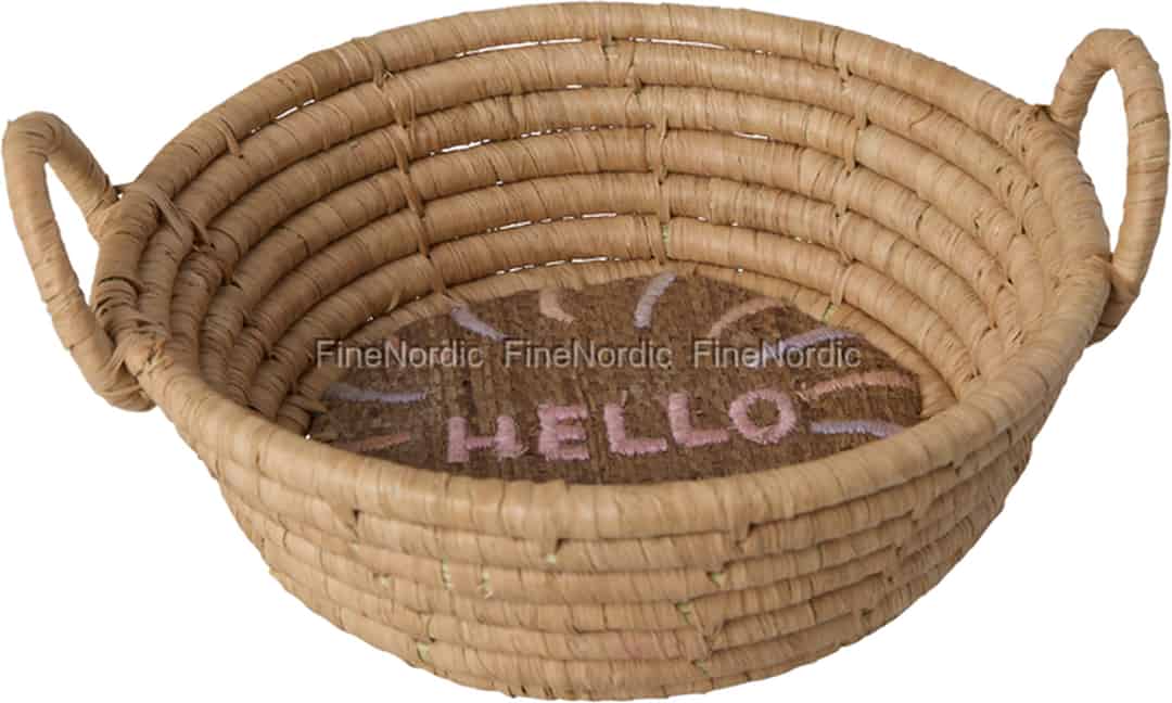 Begin your day with a smile. This delightful little raffia basket from Rice offers a warm greeting with its sweet 'Hello' embroidery, bringing a touch of handmade joy to your home's quiet corners.