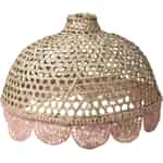 Rice Raffia Lamp Shade - Dome Shape - Embroidered Scallop Edge - Soft Pink