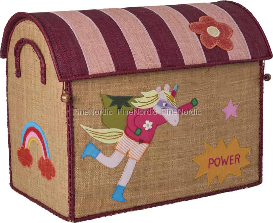 Tidying up becomes a magical adventure with this wonderful storage house from Rice. Handcrafted from natural raffia, its whimsical details and superhero unicorn are ready to guard your little one's most cherished toys and trinkets.